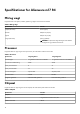 Specifikationer for Alienware m17 R4 Mål og vægt Følgende skema viser højden, bredden, dybden og vægten for din Alienware m17 R4. Tabel 1. Mål og vægt Beskrivelse Værdier Højde (maksimum) 22 mm (0,87") Bredde 399,80 mm (15,74") Dybde 294,30 mm (11,59") Vægt (maksimum) 2,97 kg (6,55 lb) BEMÆRK: Computerens vægt afhænger af den bestilte konfiguration og produktionsvariationer. Processor Følgende tabel viser oplysninger om de processorer, der understøttes af Alienware m17 R4. Tabel 2.
