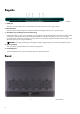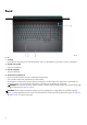 Visninger af Alienware m17 R4 Højre set fra højre side 1. microSD-kortslot Læser fra og skriver til microSD-kort Computeren understøtter følgende korttyper: ● Micro Secure Digital (mSD) ● Micro Secure Digital High Capacity (mSDHC) ● Micro Secure Digital Extended Capacity (mSDXC) 2. USB 3.1, 1. gen.-porte (2) Tilslut udstyr som f.eks. ekstern storage og printere. Giver dataoverførselshastigheder op til 5 Gbps. Venstre set fra venstre side 1.