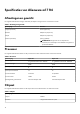 Tabel 8. Specificaties van de draadloze module Omschrijving Waarden ● AES-CCMP ● TKIP Bluetooth Bluetooth 5.1 Audio De volgende tabel bevat de audiospecificaties van uw Alienware m17 R4. Tabel 9. Audiospecificaties Omschrijving Waarden Audiocontroller Realtek ALC3281-CG Stereoconversie Ondersteund Interne audio-interface High-definition audio-interface Externe audio-interface ● Universele audio-aansluiting ● HDMI 2.