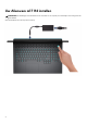 Uw Alienware m17 R4 instellen OPMERKING: De afbeeldingen in dit document kunnen verschillen van uw computer; dit is afhankelijk van de configuratie die u hebt besteld. Sluit de netadapter aan en druk op de aan-uitknop.