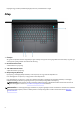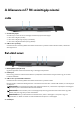 A Alienware m17 R4 számítógép nézetei Jobb 1. microSD-kártyanyílás microSD-kártya olvasása és írása. A számítógép az alábbi kártyatípusokat támogatja: ● Micro Secure Digital (microSD) ● Micro Secure Digital High Capacity (microSDHC) ● Micro Secure Digital Extended Capacity (mSDXC) 2. USB 3.1 Gen 1 portok (2) Csatlakozást biztosít eszközök, például külső adattároló eszközök és nyomtatók számára. Maximum 5 Gbit/s adatátviteli sebességet biztosít. Bal oldali nézet 1.