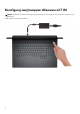 Skonfiguruj swój komputer Alienware m17 R4 UWAGA: W zależności od zamówionej konfiguracji posiadany komputer może wyglądać nieco inaczej niż na ilustracjach w tym dokumencie. Podłącz zasilacz i naciśnij przycisk zasilania.