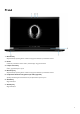 Spis treści Rodzdział 1: Skonfiguruj swój komputer Alienware m17 R4................................................................. 4 Rodzdział 2: Widoki komputera Alienware m17 R4...............................................................................5 Prawa strona..........................................................................................................................................................................5 W lewo............................................................