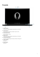 Innehåll Kapitel 1: Installera Alienware m17 R4................................................................................................... 4 Kapitel 2: Vyer av Alienware m17 R4......................................................................................................5 Höger.................................................................................................................................................................................... 5 Vänster.............................