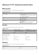 Taulukko 5. Ulkoiset portit (jatkuu) Kuvaus Arvot ● Yksi USB 3.2 Gen 2 (Type-C) -portti, jossa DisplayPort ja Power Delivery ● Yksi Thunderbolt 4 -portti, jossa Power Delivery Ääniportti Yksi yleisääniliitäntä Videoportti ● Yksi HDMI 2.1 -portti ● Yksi Mini DisplayPort 1.4 ● Yksi Thunderbolt 4 -portti, jossa Power Delivery HUOMAUTUS: DisplayPort-laitteen kytkemiseen tarvitaan USB Type-C–DisplayPort -sovitin (myydään erikseen).