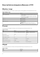 Tabela 5. Porty zewnętrzne (cd.) Opis Wartości porty USB ● Dwa porty USB 3.2 pierwszej generacji z funkcją PowerShare ● Jeden port USB 3.2 Type-C drugiej generacji z obsługą trybu DisplayPort i funkcji Power Delivery ● Jeden port Thunderbolt 4 z funkcją Power Delivery Port audio Jedno gniazdo uniwersalne audio Port wideo ● Jeden port HDMI 2.1 ● Jedno złącze Mini DisplayPort 1.