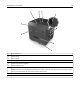 Informationen zum Drucker 11 Verwenden des Druckerbedienfelds 1 Element Beschreibung Menüs (Taste) Öffnen der Menüs. Hinweise: • Die Menüs sind nur verfügbar, wenn sich der Drucker im Status Bereit befindet. • Wenn Sie die Taste beim Navigieren in den Menüs drücken, kehrt das Druckerbedienfeld zur obersten Ebene des Menübildschirms zurück. 2 Display Anzeigen von Druckoptionen sowie von Status- und Fehlermeldungen 3 Energiesparmodus-Taste Aktivieren des Energiespar- oder Ruhemodus.