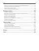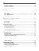 Inhalt 2 Inhalt Sicherheit.....................................................................................................5 Informationen zum Drucker.........................................................................7 Suchen nach Informationen zum Drucker.................................................................................................7 Auswahl eines Druckerstandorts...............................................................................................................