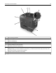 Informacje na temat drukarki 11 Przy użyciu panelu sterowania drukarki 1 Przyciski Przeznaczenie Przycisk Menu Umożliwia otwarcie menu. Uwagi: • Menu są dostępne, tylko gdy drukarka znajduje się w stanie Gotowa. • Naciśnięcie przycisku przy otwartym menu powoduje pojawienie się panelu sterowania drukarki na ekranie najwyższego menu. 2 Wyświetlanie Wyświetlanie opcji drukowania oraz komunikatów o stanie i błędach. 3 Przycisk Czuwanie Powoduje włączenie trybu czuwania lub hibernacji.