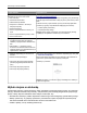 Opis menu drukarki 65 Bezprzewodowy, menu Uwaga: To menu jest dostępne tylko w drukarkach podłączonych do sieci bezprzewodowej lub modelach drukarek z bezprzewodową kartą sieciową. Aby uzyskać dostęp do menu, przejdź do jednej z następujących opcji: • Sieć/Porty >Sieć >Konfiguracja sieci >Sieć bezprzewodowa Opcja Przeznaczenie Tryb sieciowy Infrastruktura Tryb Ad hoc Określa tryb sieci. Uwagi: • Domyślnym ustawieniem fabrycznym jest Ad hoc.