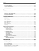 Innehåll 6 Underhålla skrivaren................................................................................228 Rengöra skrivarens delar.......................................................................................................................228 Rengöra skrivaren ...........................................................................................................................................228 Rengöring av skannerglaset ............................................................