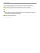 Innehåll 7 [x]‑pappersstopp, rensa den manuella mataren. [250]........................................................................256 [x]‑pappersstopp, öppna den automatiska dokumentmatarens dokumentlock. [28y.xx]....................257 Felsökning................................................................................................260 Förstå skrivarmeddelanden...................................................................................................................