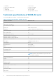 Table 1. Technical specifications of BOSS-S2 card (continued) Function or feature BOSS-S2 card Load balance N/A Rebuild Yes (Only Auto–rebuild) Hot spare No Change rebuild priority/rate No Virtual disk write back/read ahead cache No NOTE: BOSS-S2 controller does not support controller cache. Battery support N/A NOTE: BOSS-S2 controller does not support a battery. Non–RAID disk cache policy Yes NOTE: OS controlled or device defaults.