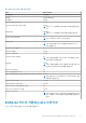 표 4. 운영 체제에서 mvcli를 제거하는 지침 (계속) 운영 체제 운영 체제에서 mvcli를 제거하는 지침 ESXi vib remove 명령을 사용하여 제거 Integrated Dell Remote Access Controller 및 Lifecycle Controller iDRAC(Integrated Dell Remote Access Controller) 및 LC(Lifecycle Controller) 애플리케이션을 사용하면 시스템에 설치된 운영 체제 없 이도 iDRAC 및 LC를 사용하여 시스템에 설치된 RAID와 네트워크 컨트롤러를 효율적으로 모니터링할 수 있습니다. 자세한 정보는 www.dell.com/idracmanuals에서 Integrated Dell Remote Access Controller 9 사용자 가이드를 참조하십시오.
