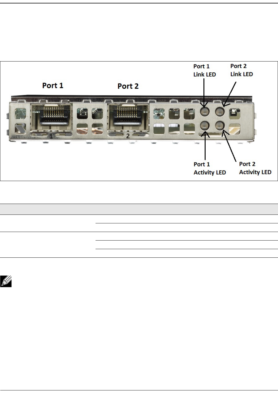 Table 9: BCM957414M4140D Network Daughter Card (rNDC) Activity and Link LED Locations