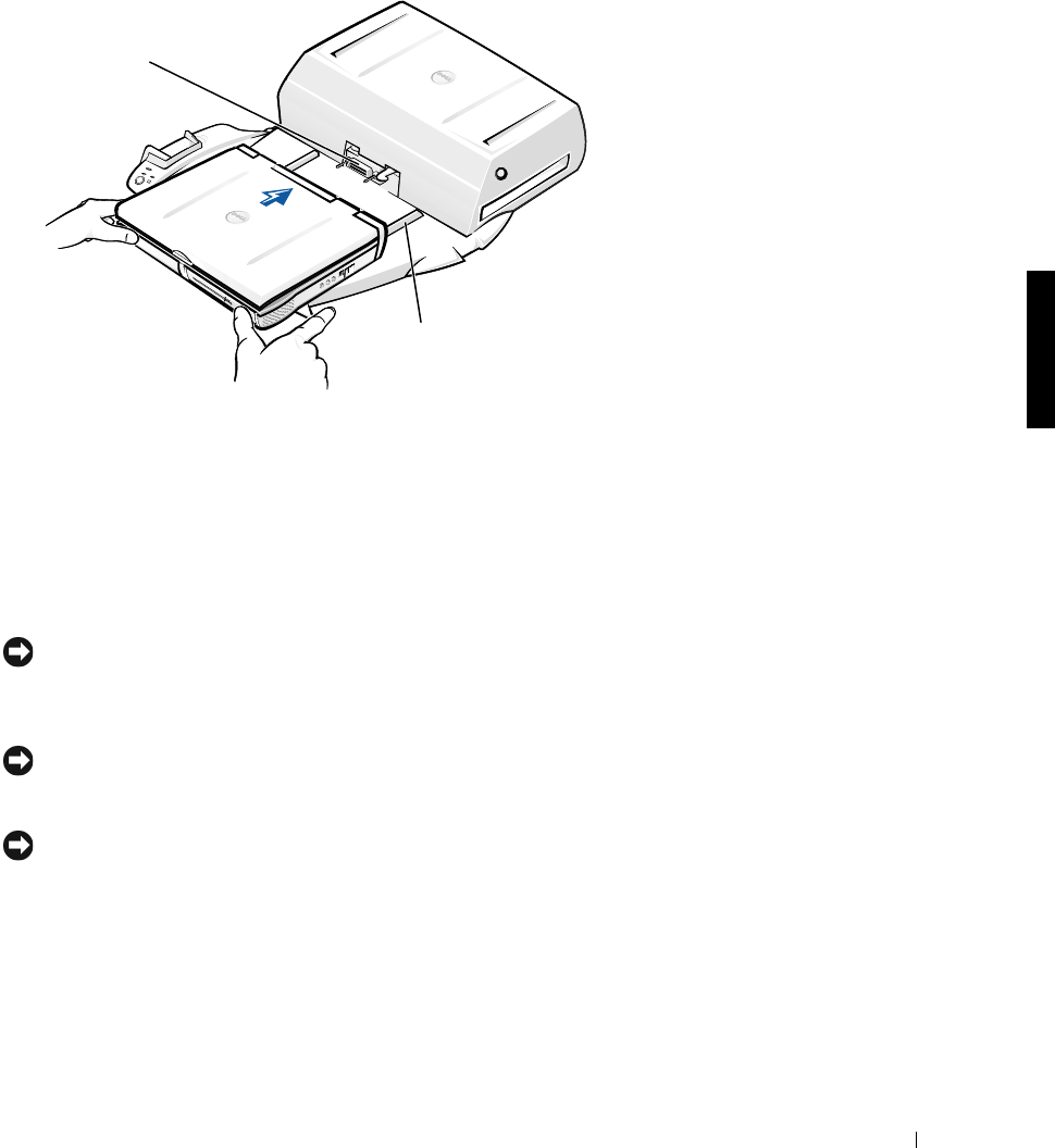 AVIS : Ne soulevez pas l'ordinateur ni le périphérique d'amarrage séparément