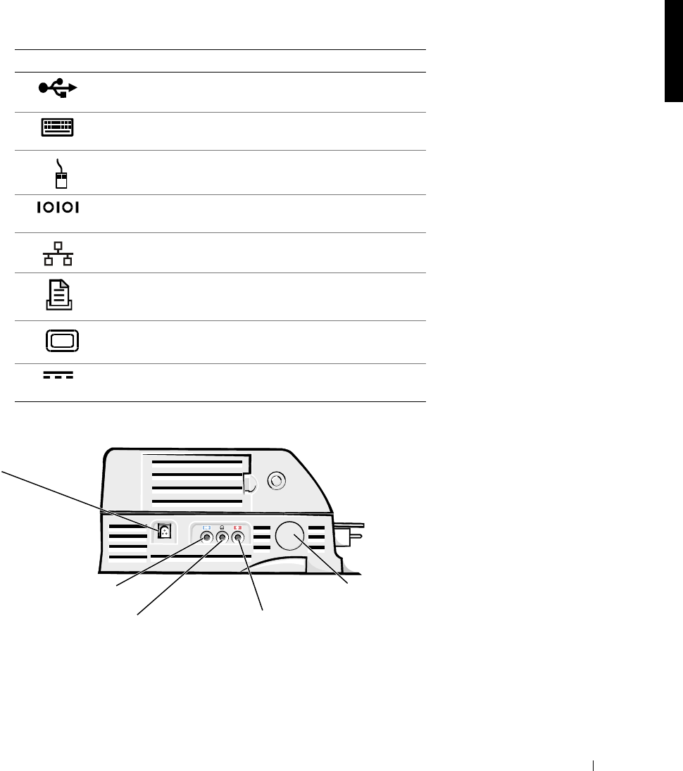 En parallell enhet, t ex en skrivare, ansluts till parallellporten.
