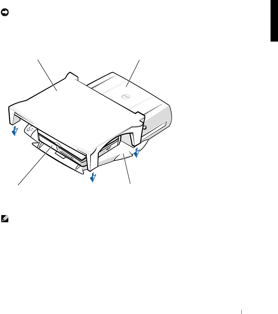 Obs! Kontrollera att de bakre benen på bildskärmsstället står i spåren