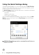 Using the Quick Settings dialog Clicking Dell Display Manager's icon on the status bar opens the Quick Settings dialog box. When multiple Dell monitors are connected to the computer, you can select any monitor from the drop-down menu. The Quick Settings dialog box provides quick access to commonly-used features, such as configuring the monitor’s: • Resolution • Brightness and Contrast • Presets (auto or manual mode) A list of recently-used layouts are available for quick selection.