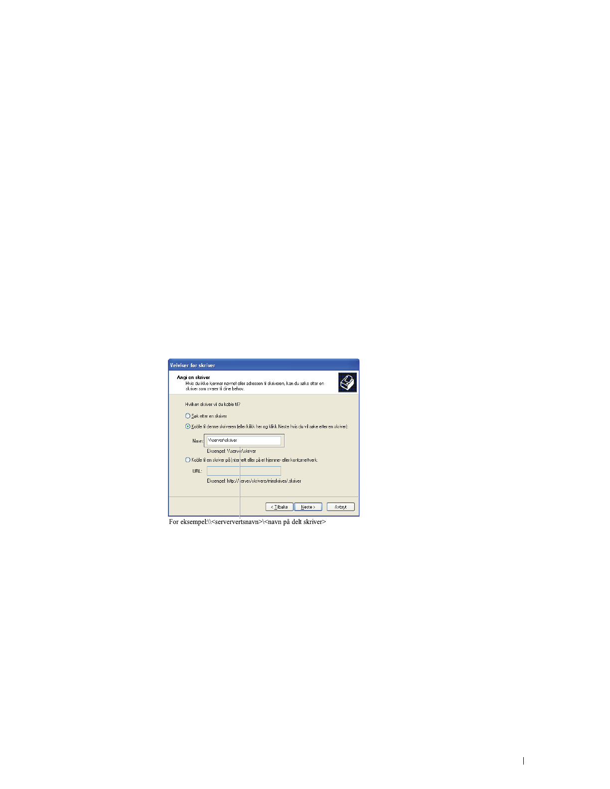 den delte skriveren er navnet som ble tildelt under serverinstallasjonen.