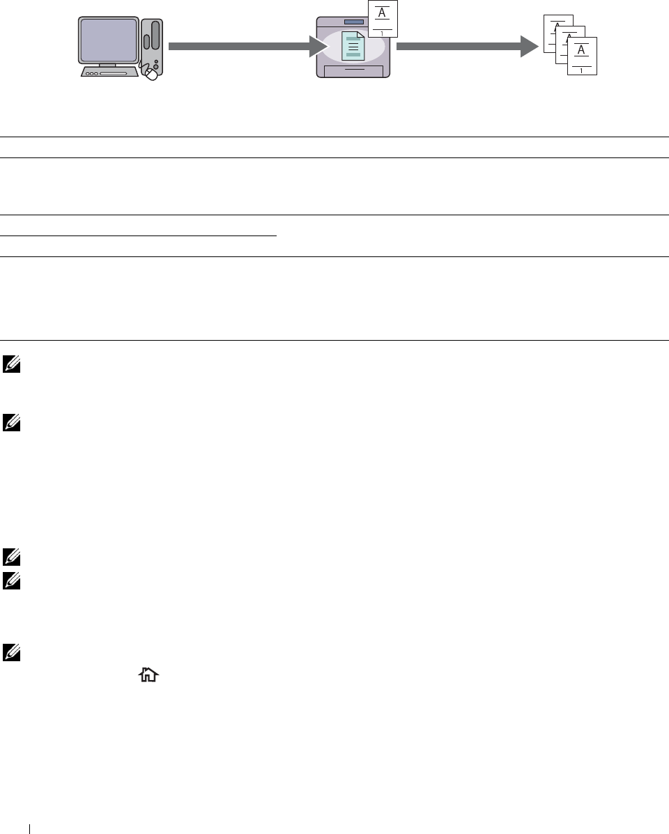 Når du velger en jobbtype i skriverdriveren, blir jobben lagret i minnet eller på harddisken til du ber om en utskrift fra