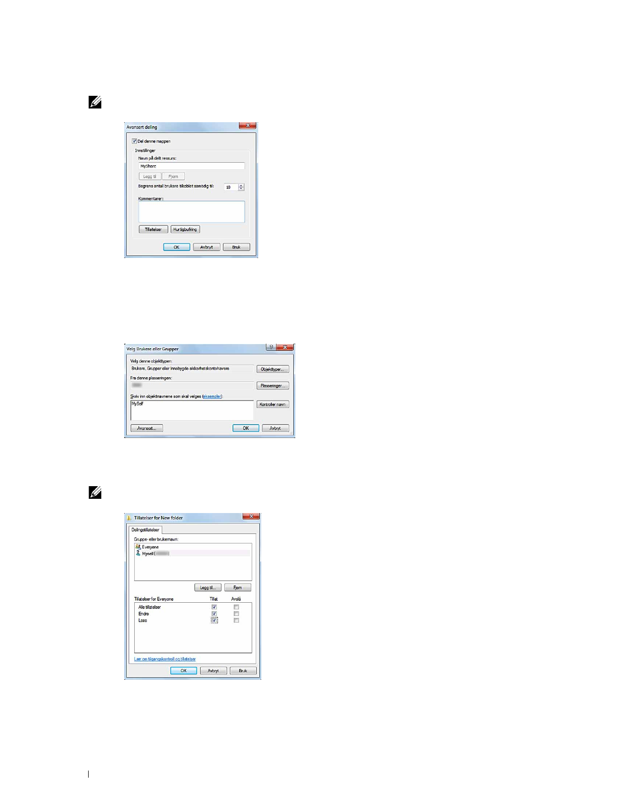 MERK: Skriv ned det delte navnet siden du må bruke navnet i neste innstillingsprosedyre.