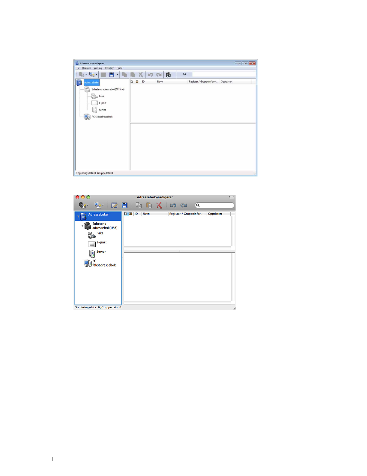 Er koblet til skriverens adressebok for Faks-funksjonen. Du kan registrere opptil 200 faksnumre og seks grupper