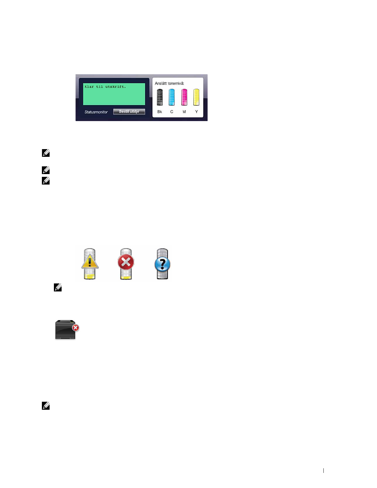 Meldingsområde for skriverstatus