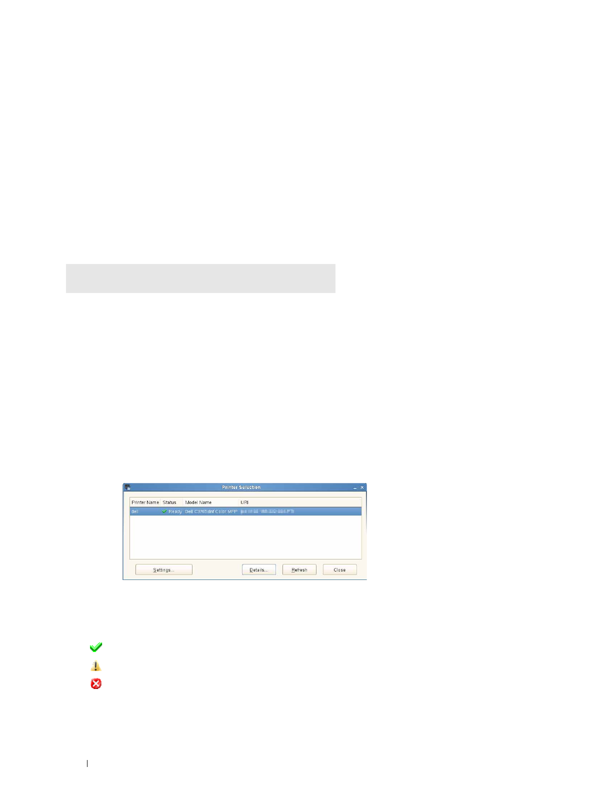 Alle skrivere som er registrert i CUPS (common UNIX printing system) vises i en liste.