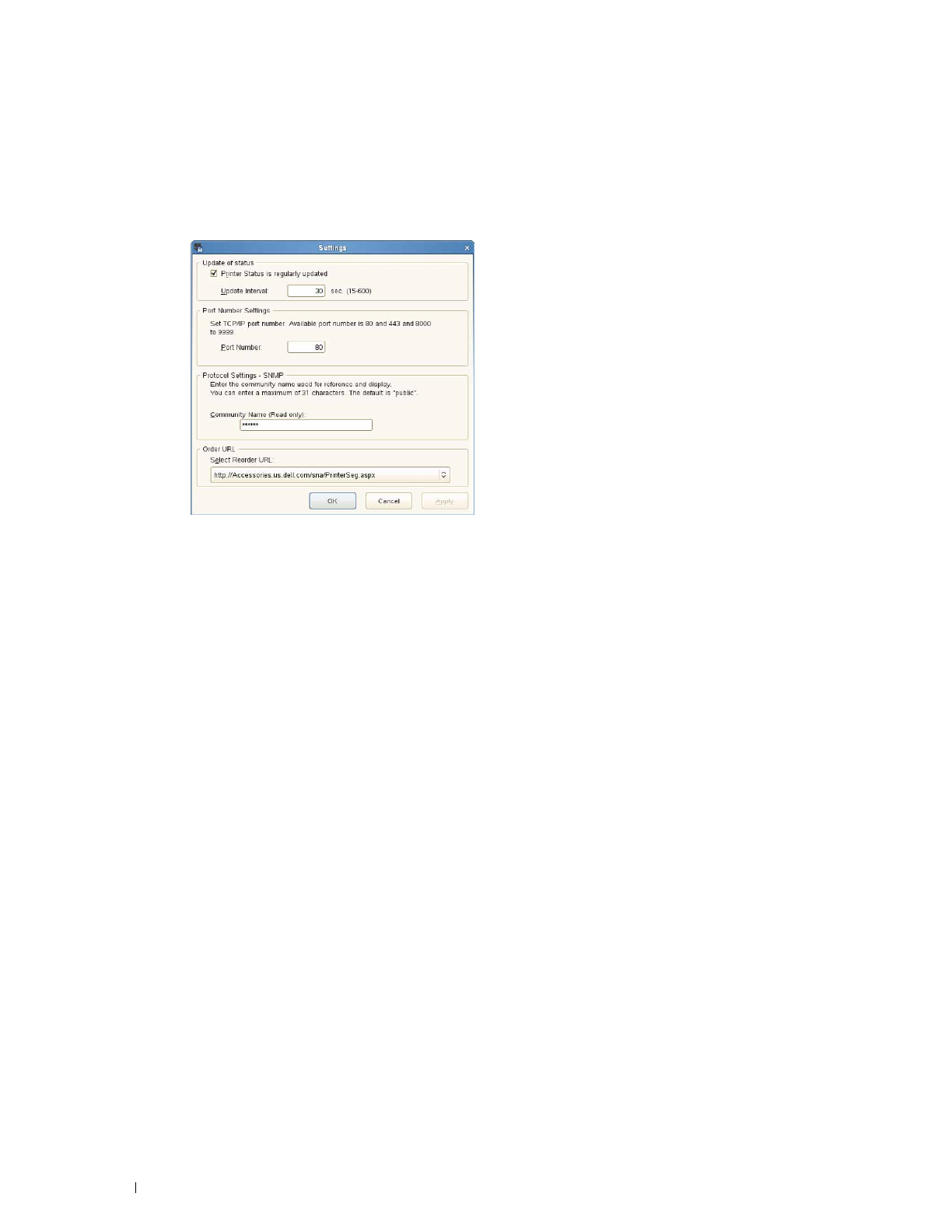 Velg avmerkingsboksen for å aktivere/deaktivere oppdatering av Skriverstatus med det angitte intervallet.