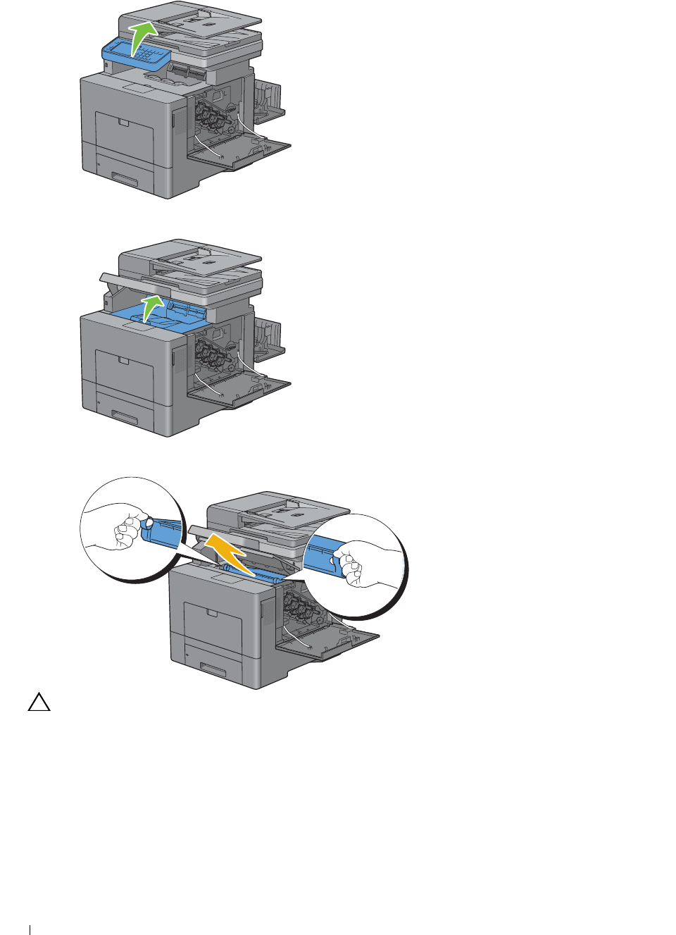 FORSIKTIG: Hvis du ikke greier å trekke enheten ut fra skriveren, må du forsikre deg om at alle fremgangsmåtene