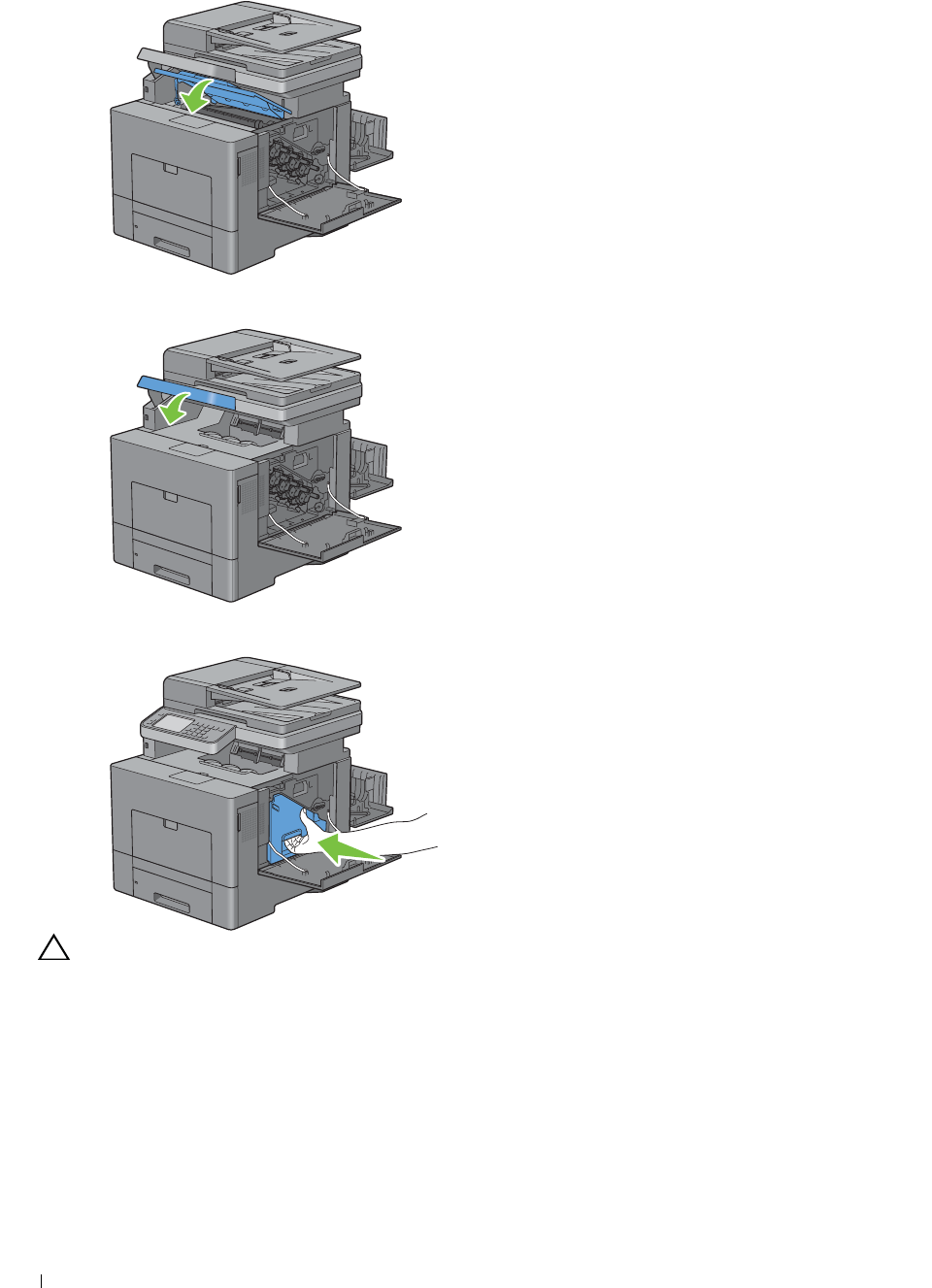 FORSIKTIG: Dersom resttonerboksen ikke vil sitte ordentlig på plass, må du kontrollere at belteenheten ble satt helt inn
