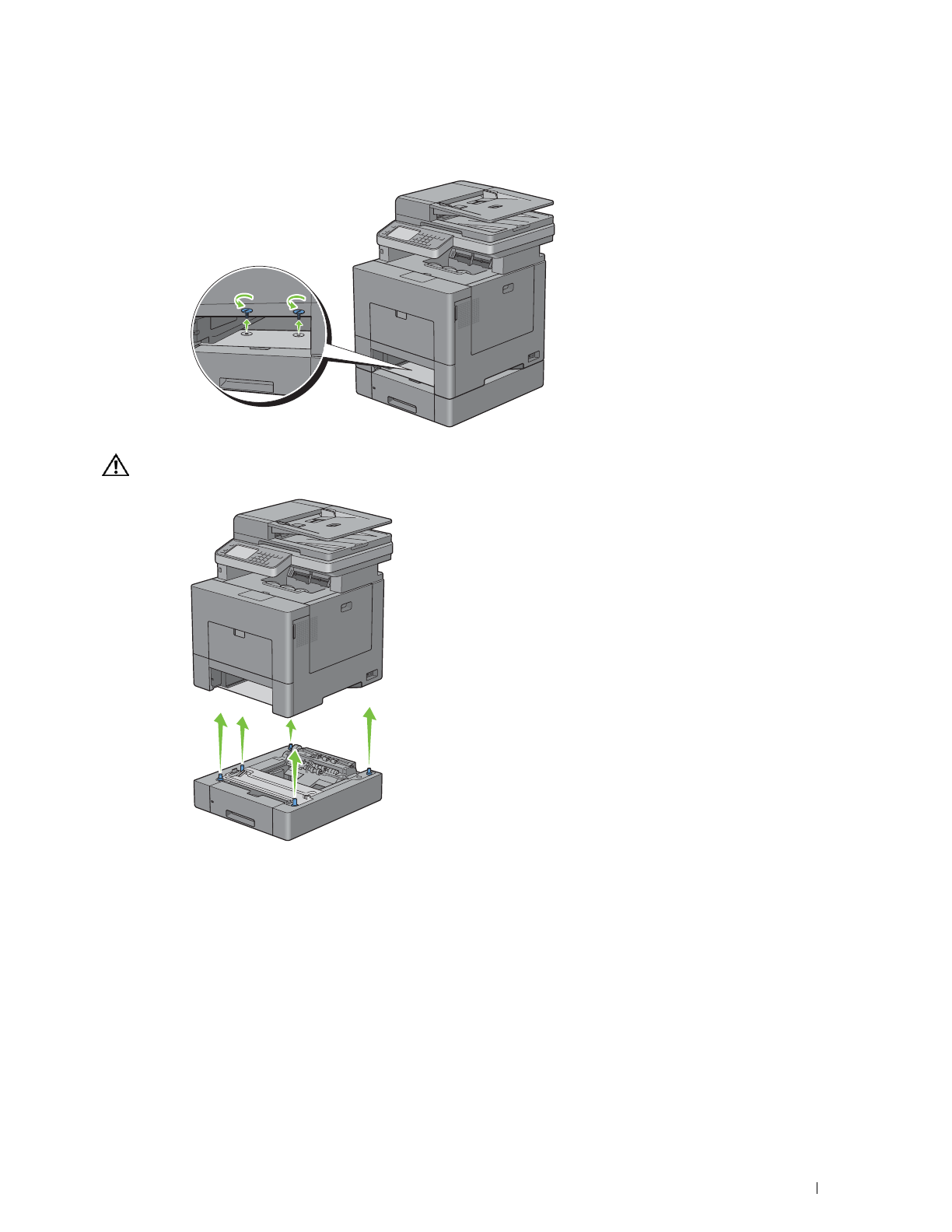 Løft forsiktig skriveren av den alternative 550-arkmateren, og plasser den på en rett overflate.
