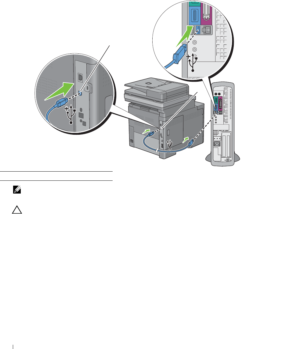 MERK: Kontroller at USB-symbolet på kabelen samsvarer med USB-symbolet på skriveren.