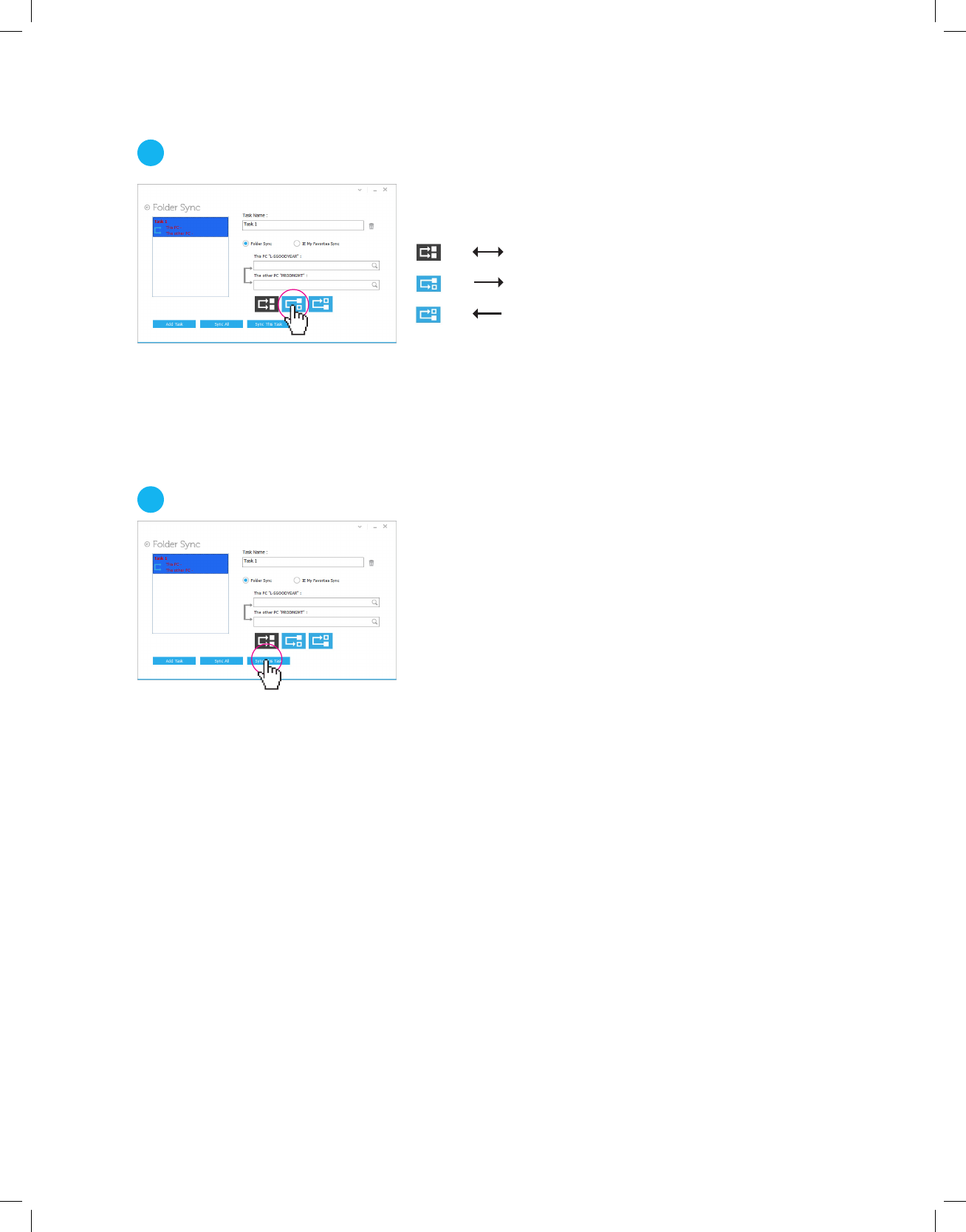 Es gibt 3 Optionen für Folder Sync: