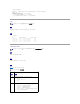 严重性 “Informational”(通知) 指示事件上的通知条目,其中严重性状况未更改。 “Unknown”(未知) 指示不严重事件,应 该尽快采取修正操作以避免系统故障。 “Warning”(警告) 指示严重事件,要求立即采取修正操作以避免系统故障。 “Severe”(严重) 指示要求 立即采 取纠正 操 作以避免系统故障的严重事件。 日期/时 间 指示发生事件的确切日期和时间(例如,“Wed May 02 16:26:55 2007”[2007 年 5 月 2 日,周三,16:26:55])。如果未出现日期/时间,则该事件在系统引导时出 现。 说明 提供 CMC 生成的事件的简单说明(例如,冗余掉失、插入服务器)。 使用 RACADM 1. 打开到 CMC 的远程登录/SSH 文本控制台,并登录。 2.