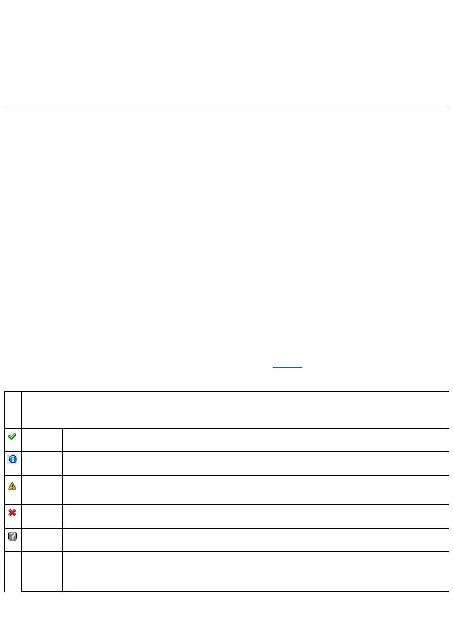 LasecciónEstado del componente muestra el estado de cada componente con un icono. Tabla11-7 proporciona descripciones de cada icono.