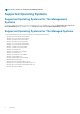 NOTE: Vostro systems are classified as Dell UnManaged Clients. Supported Operating Systems Supported Operating Systems For The Management Systems For the list of supported operating systems for the management server for OpsMgr 2012/SP1/R2, see technet.microsoft.com/en-us/ library/hh205990.aspx and for OpsMgr 2007, see technet.microsoft.com/en-us/library/bb309428(en-us).aspx. Supported Operating Systems For The Managed Systems The Dell Client Management Pack version 5.