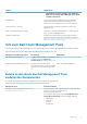 Funktion Funktionalität auf Dell Client-Systemen gestoppte oder deaktivierte OMCI unter der Gruppe Dell UnManaged Clients (Nicht verwaltete Dell Clients). Überwachung Unterstützt Funktionszustandsüberwachung für Dell ClientSysteme und Zustandsinformationen auf Instanzebene für Speicher, Prozessoren, OMCI-Dienst, Sensoren und Speicher. Starten des Remote-Desktops Startet den Remote-Desktop für Dell Client-Systeme über OpsMgr-Konsole.