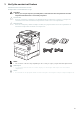 About the Printer À propos de l'imprimante Acerca de la impresora Front View Vue de face Vista frontal 10 11 12 13 14 1 2 9 3 4 8 7 6 5 1 Duplex Automatic Document Feeder (DADF) 8 Bypass Tray (Tray 5) 2 Transfer Belt Unit 9 Toner Cartridges 3 Drum Cartridges 10 Front Cover 4 Waste Toner Box 11 Front USB Port 5 Right Side Cover 12 Control Panel 6 Tray 1 13 Output Tray Extension 7 Optional 550-Sheet Feeder (Tray 2) 14 Top Cover 1 Chargeur automatique de documents recto vers