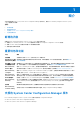 ● Microsoft System Center 2012 R2 Configuration Manager ● Microsoft System Center Current Branch Configuration Manager 註: Dell Command | Integration Suite for System Center 4.0 及更高版本,無法向下相容較舊版本的 Microsoft System Center Configuration Manager。Dell 建議您以 Configuration Manager 2007 下載並使用 Dell Client Integration Pack 3.1 (從 dell.