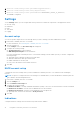 1. Launch Dell Command | Intel vPro Out of Band application. 2. Click the settings icon. On the Settings screen, the Indications tab is displayed. 3. Configure the following settings: ● Retention Days—The number of days client events are stored in the database, ranging from a minimum of 7 and a maximum of 180 days. Events are removed once the retention day period is met. ● Retry Days—The number of days the indications service attempts to connect the AMT service on the client.