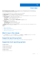 Notes, cautions, and warnings NOTE: A NOTE indicates important information that helps you make better use of your product. CAUTION: A CAUTION indicates either potential damage to hardware or loss of data and tells you how to avoid the problem. WARNING: A WARNING indicates a potential for property damage, personal injury, or death. © 2017 - 2019 Dell Inc. or its subsidiaries. All rights reserved. Dell, EMC, and other trademarks are trademarks of Dell Inc. or its subsidiaries.