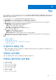 참고, 주의 및 경고 노트: 참고"는 제품을 보다 효율적으로 사용하는 데 도움이 되는 중요 정보를 제공합니다. 주의: 주의사항은 하드웨어의 손상 또는 데이터 유실 위험을 설명하며, 이러한 문제를 방지할 수 있는 방법을 알려줍니다. 경고: 경고는 재산 손실, 신체적 상해 또는 사망 위험이 있음을 알려줍니다. © 2017 - 2019 Dell Inc. or its subsidiaries. All rights reserved. Dell, EMC 및 기타 상표는 Dell Inc. 또는 그 자회사의 상표입니다. 다른 상표는 해당 소유자의 상표일 수 있습니다.