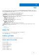 참고, 주의 및 경고 노트: 참고"는 제품을 보다 효율적으로 사용하는 데 도움이 되는 중요 정보를 제공합니다. 주의: 주의사항은 하드웨어의 손상 또는 데이터 유실 위험을 설명하며, 이러한 문제를 방지할 수 있는 방법을 알려줍니다. 경고: 경고는 재산 손실, 신체적 상해 또는 사망 위험이 있음을 알려줍니다. © 2018-2019 Dell Inc. 또는 자회사. 저작권 본사 소유. Dell, EMC 및 기타 상표는 Dell Inc. 또는 자회사의 상표입니다. 기타 상표는 각 소유자의 상표일 수 있습니다.