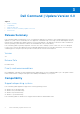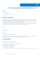 4 Dell Command | Update Version 3.1.3 Topics: • • • • • Release Summary Compatibility Platforms Affected What’s new in Dell Command | Update Version 3.1.3 Known issues Release Summary Dell Command | Update is installed as a stand-alone application on a business client supported platform to provide updates for system software released by Dell. This application is installed locally on the target systems and simplifies the BIOS, firmware, driver, and application update experience on Dell client hardware.