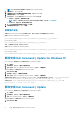 ● 「z」是可用更新的大小。 ● ● ● ● ● 安全性更新 — 這些更新能改善系統的安全性。 重大更新 — 這些更新對於改善系統穩定性、安全性和可用性極為重要。 建議更新 — 建議在系統上安裝這些更新。 選用更新 — 這些為非必要更新。 Dell Docking Solution — 這些更新適用於 Dell Docking Solution。 如果選擇 Dell Docking Solution 選項,則: ● ● ● ● ● 無法從自訂選擇畫面取消 Dell 擴充解決方案的更新。 選取自動重新啟動系統 (需要時) 選項且無法取消。 系統可能會重新啟動數次,然後繼續安裝。 系統會選取一或多個類別 (安全性、重大、建議、選用),如果有屬於 Dell Docking Solution 的一部分的更新,則無法清除。 若無 Dell Docking Solution 的可用更新,則不會顯示 Dell Docking Solution 選項。 如有以下狀況,隨即顯示警告訊息: ● 要安裝的更新需要過渡版本的公用程式。如果更新有多個相依性,Dell Command | Update 會試圖安裝最新版本。此工作