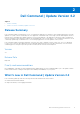 Contents Chapter 1: Dell Command | Update Version 4.3.............................................................................. 4 Release Summary................................................................................................................................................................ 4 What’s new in Dell Command | Update Version 4.3....................................................................................................4 Chapter 2: Dell Command | Update Version 4.2.......