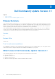 4 Dell Command | Update Version 4.0 Topics: • • • • • Release Summary Compatibility Platforms Affected What’s new in Dell Command | Update Version 4.0 Known issues Release Summary Dell Command | Update is installed as a one-to-one stand-alone application on a business client supported platform to provide updates for system software released by Dell.
