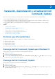 2 Instalación, desinstalación y actualización Dell Command | Update Esta sección contiene información acerca de la instalación, la desinstalación y la actualización de Dell Command | Update. Hay dos descargas disponibles para Dell Command | Update versión 4.0: ● Dell Command | Update para Windows 10: aplicación Plataforma universal de Windows (UWP) compatible con Windows 10 (de 64 bits), a partir de Redstone 1, número de compilación 14393 en adelante.